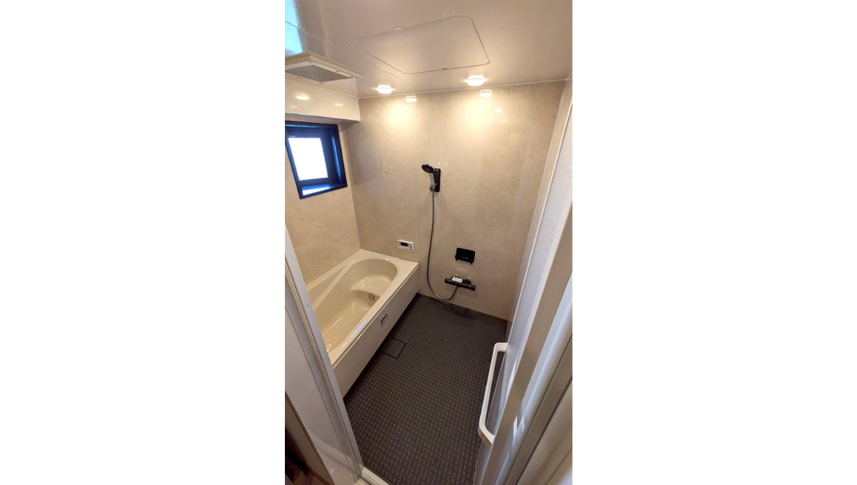 水が溜まりやすかった収納棚もなくしてすっきり清潔な浴室に。
